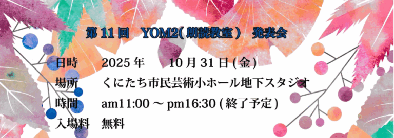 大木実香の たのしい朗読 リーディングクラブ・聞き手に届くお話キャッチボール お問合せ Reading Club たのしい朗読 「大人の絵本」を読んでみましょうショートストーリー・詩・エッセイ・童話、そして落語・ドラマ台本…ときには音楽をバックにいろいろなジャンルの朗読も楽しめます年齢・性別・経験問わず 大歓迎です! 第11回 YOM2(朗読教室)発表会:2025年10月31日(金)・くにたち市民芸術小ホール地下スタジオ Media & Profile 大木実香のメディア出演 パンフレット CM 大木実香プロフィール 教室案内 それぞれの教室をクリックして詳細をご覧ください YOM2 朗読教室立川 産経学園吉祥寺 リーディングレッスン個別・グループ リーディングレッスンは個人・グループともに受付中です! リーディングレッスンのページから詳細をご覧ください QUESTIONS? 個人・グループレッスンの内容やお仕事の依頼など、こちらからお問合せください お問合せ